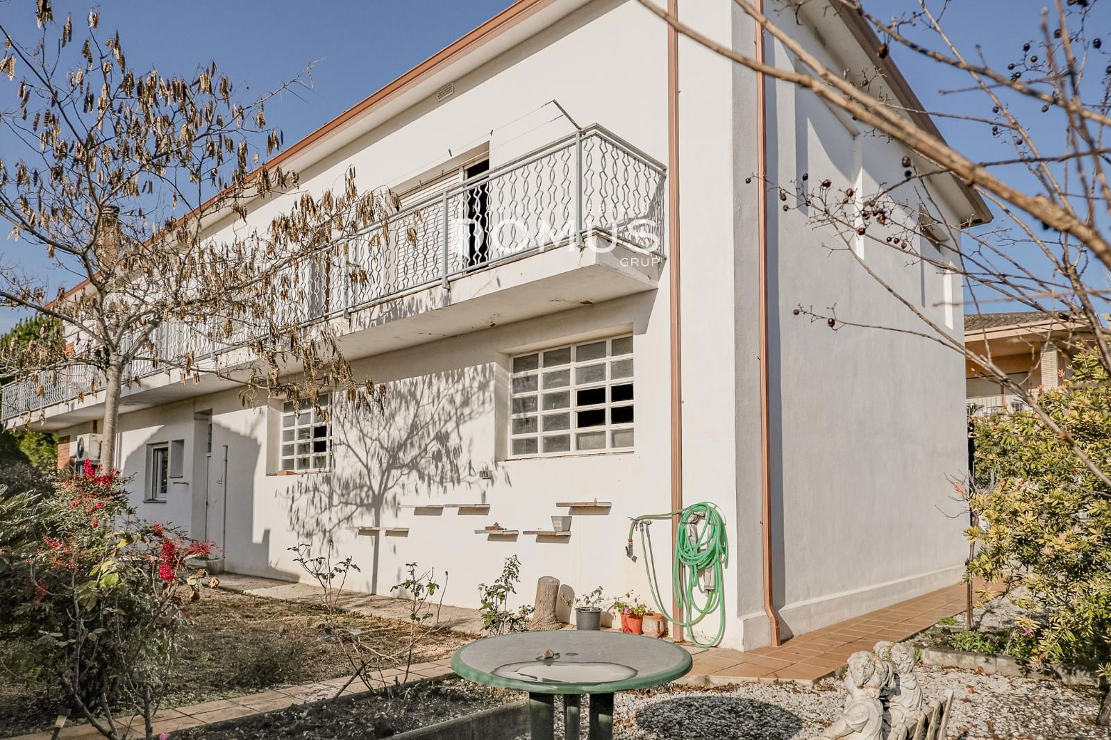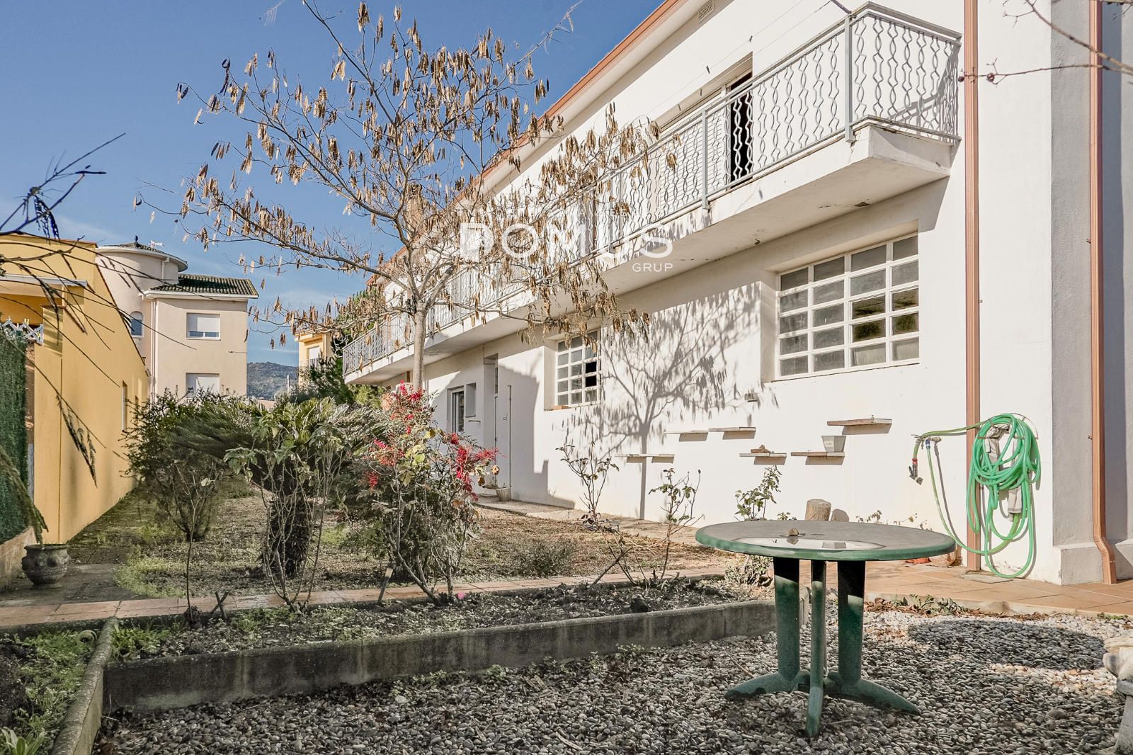 A la planta baixa hi trobem un ampli garatge de 142 m² i un local comercial de 38 m², actualment una perruqueria en funcionament, ideal per a qui vulgui combinar habitatge i activitat professional o com a inversió. Des de l’entrada principal s’accedeix tant al garatge com al jardí, molt ampli, orientat al sud, privat i amb una gran sensació d’intimitat.